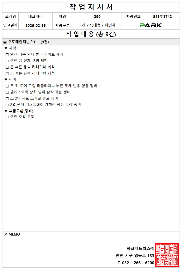 2열 센터 디스플레이 간헐적 작동 불량 정비