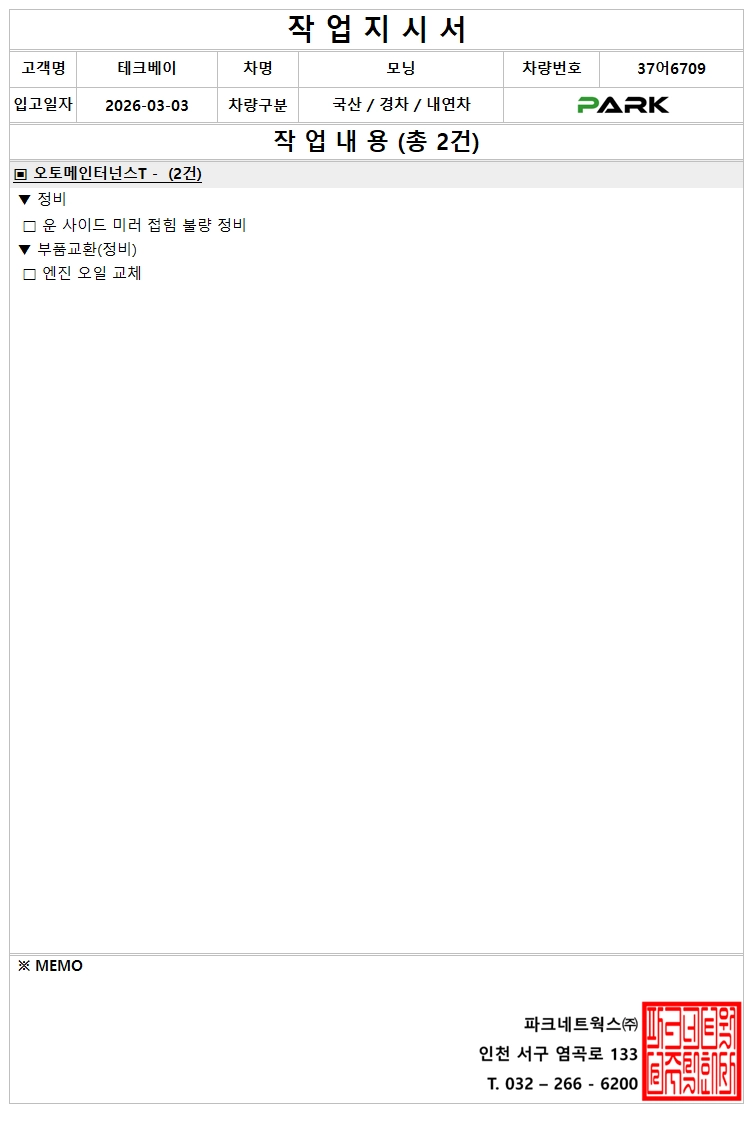 [정비] 37어6709 (출고 : 26.03.03)