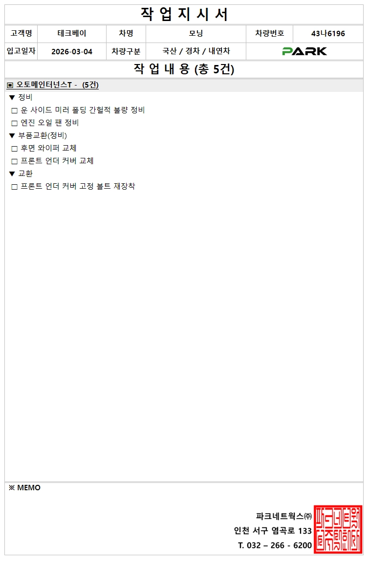 [정비] 43나6196 (출고 : 26.03.05)