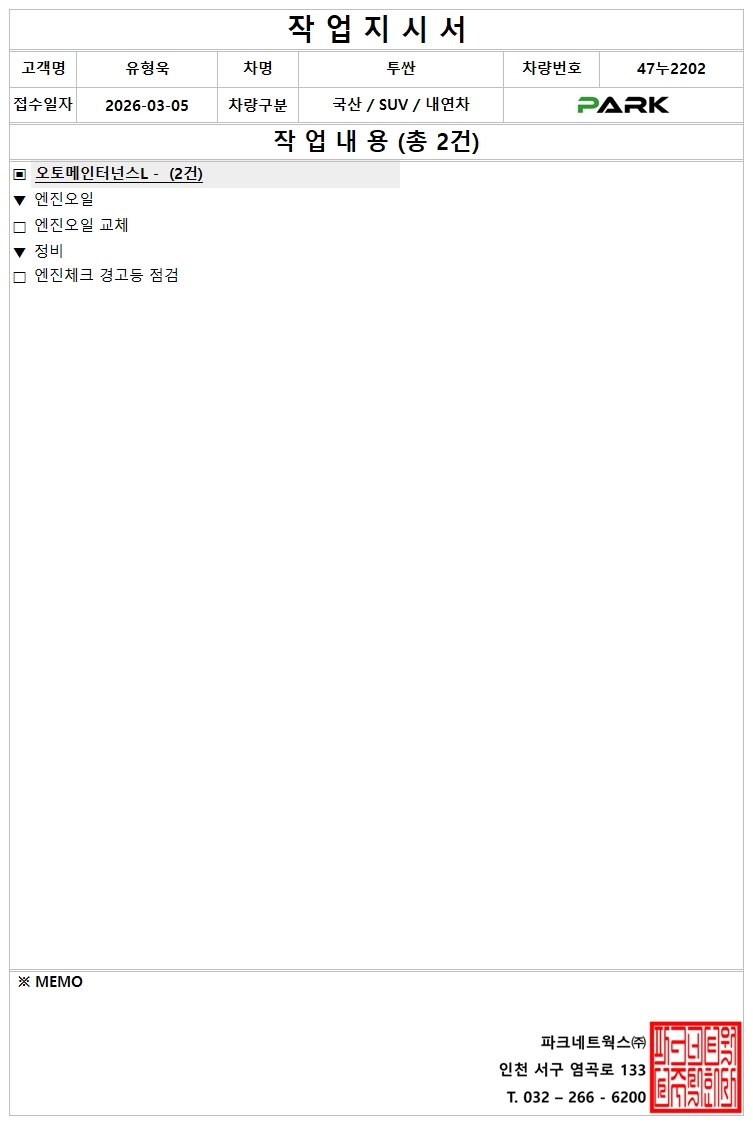 점검ㆍ정비명세서