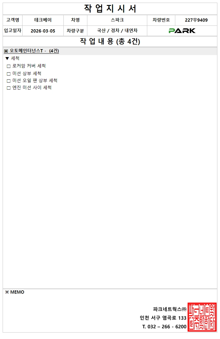 [정비] 227무9409 (출고 : 26.03.05)