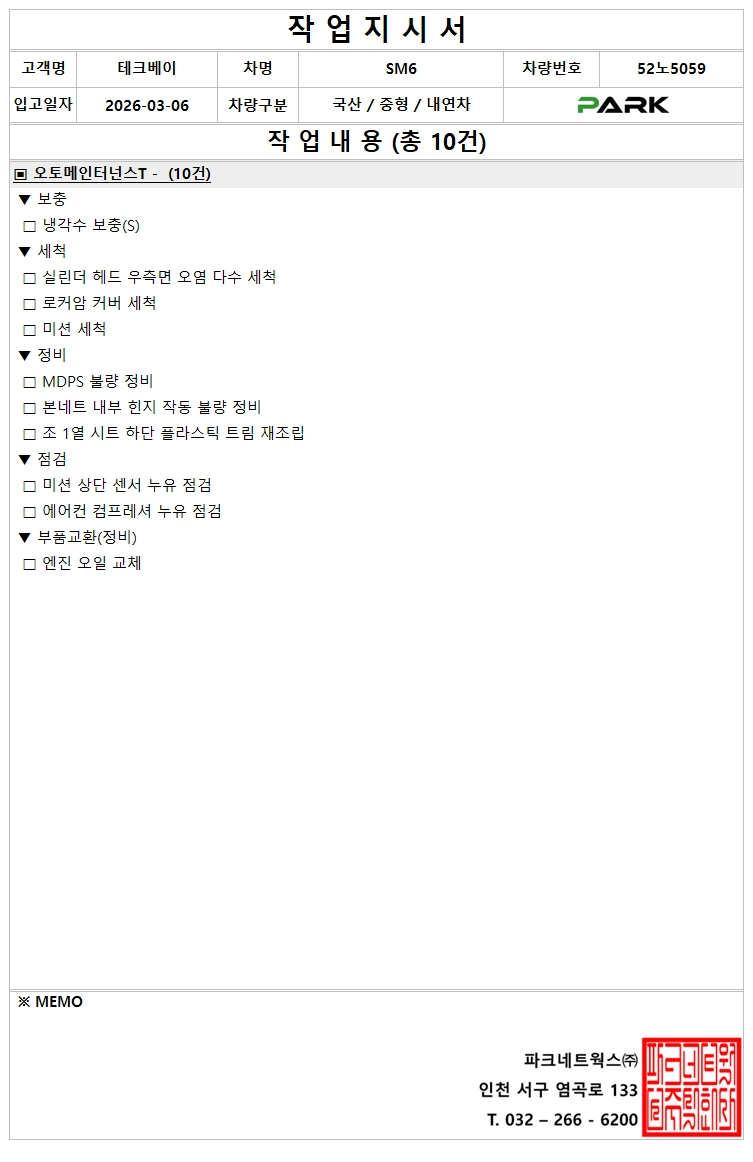 [정비] 52노5059 (출고 : 26.03.06)