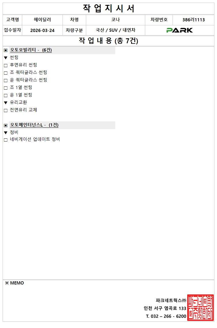 점검ㆍ정비명세서
